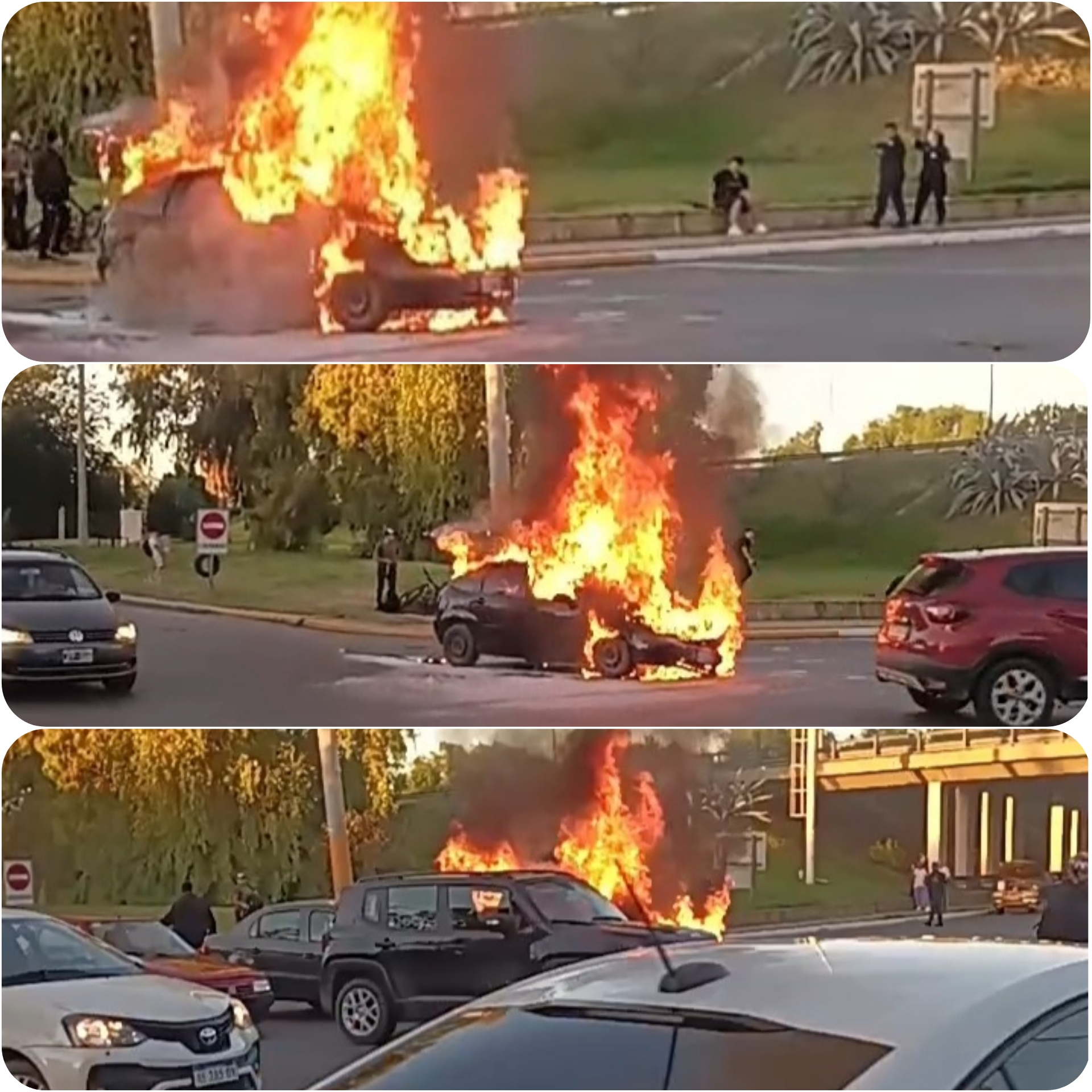 Alrededor las 7:30 horas de éste lunes, un auto comenzó a prenderse fuego en calle Hipólito Yrigoyen y Avenida Circunvalación, en Santa Lucía.