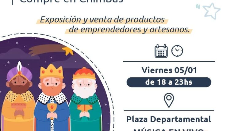 La Municipalidad de Chimbas, junto al Centro Comercial del Departamento, organizan la Gran Feria de Reyes Magos, con el objetivo de fomentar el Compre en Chimbas. La misma se realizará este viernes 5 de enero, d 18 a 23 hs, en la Peatonal de la Plaza Departamental.