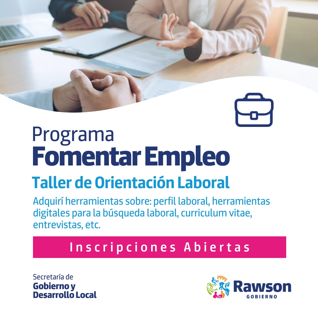La Municipalidad de la Ciudad de Rawson, a través de la Secretaría de Gobierno y Desarrollo Local, anunció la apertura de inscripciones para el Taller de Orientación Laboral, en el marco del Programa «Fomentar Empleo».