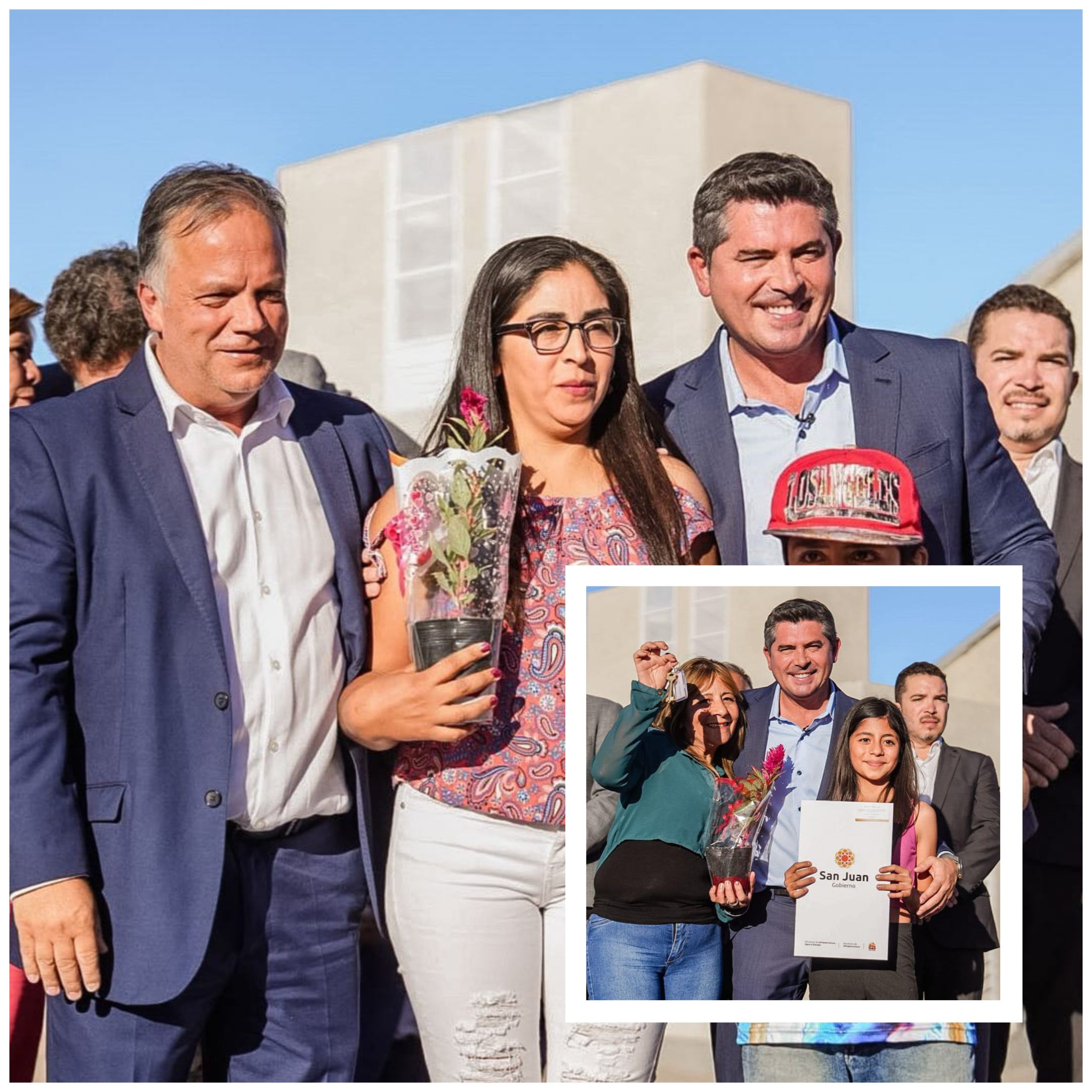 En el acto de entrega de llaves, que se llevó a cabo en la Avenida Centenario y Calle Vieja, en la localidad de San José de Jáchal, Orrego destacó que …“83 familias van a tener su nuevo hogar que, como siempre digo, esto es una casa, ustedes le van a imprimir el sentimiento y la van a transformar en un hogar y van a tener la oportunidad, la más linda de todas, de poder disfrutar de su techo propio, disfrutar de la Navidad, del Año Nuevo. Quiero que sepan que vamos a seguir trabajando de la misma manera, el año que viene también vamos a estar entregando viviendas en este departamento de Jáchal…”.