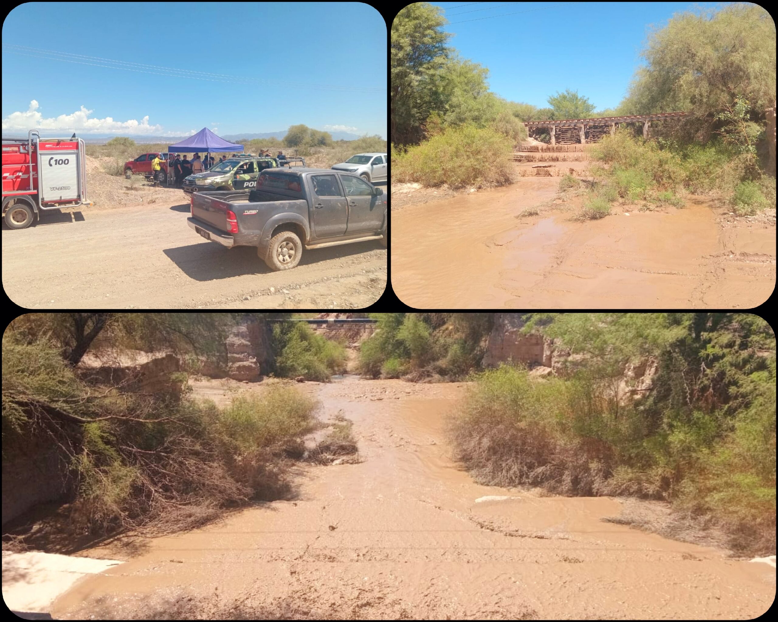 – 11:00 h aprox: Lamentablemente, se informa que el masculino que fue arrastrado por la creciente, ha sido encontrado sin vida.
