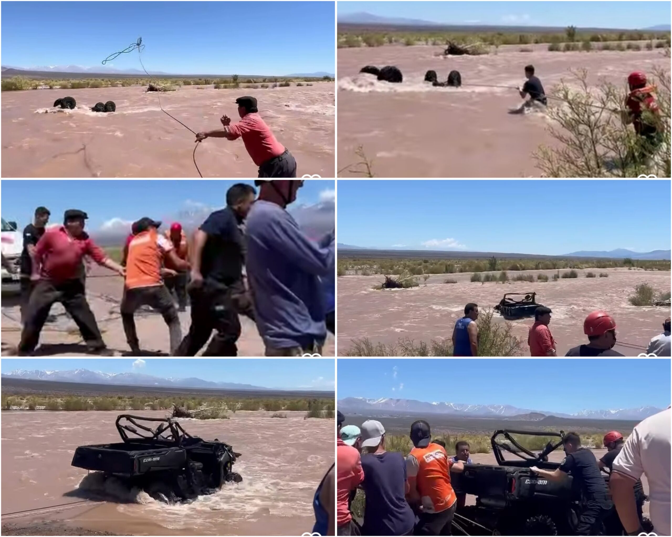Una pareja, a bordo de un cuatriciclo, quiso cruzar el Río Los Patos y terminó siendo arrastrada por la creciente. Por fortuna, no hubo que lamentar víctimas.