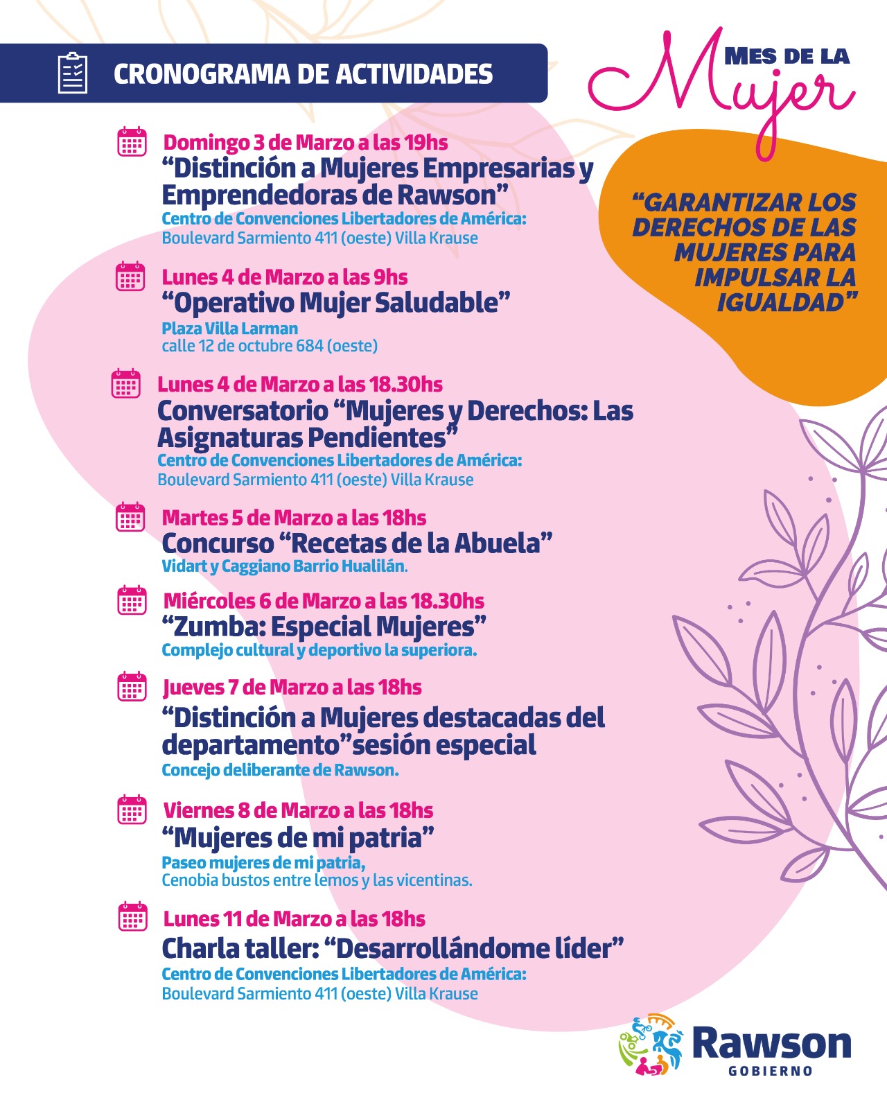 Con esta variada agenda, Rawson continúa fortaleciendo su compromiso con la equidad de género y el reconocimiento de la labor y el valor de las mujeres en la sociedad.