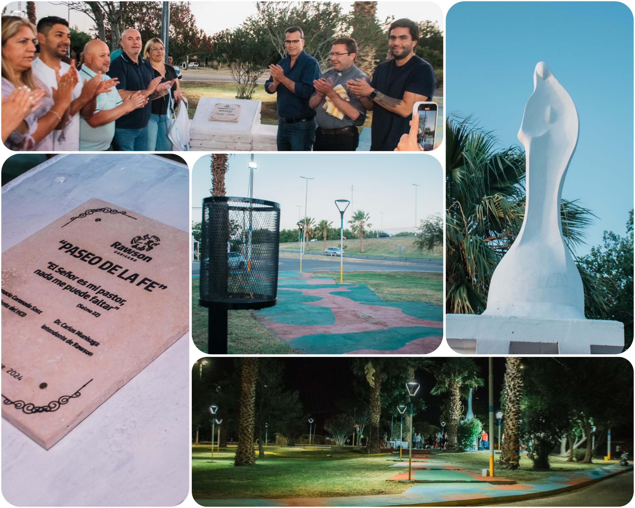 La Municipalidad de Rawson puso a disposición de los vecinos, obras de urbanización en la plazoleta ubicada en calles General Acha y José Dolores, que ahora lleva el nombre de Paseo de la Fe, como así también en el paseo de la Gruta de Fátima. Este espacio fue transformado con el esfuerzo exclusivo de recursos municipales y el compromiso de quienes trabajan diariamente por mejorar nuestro departamento.