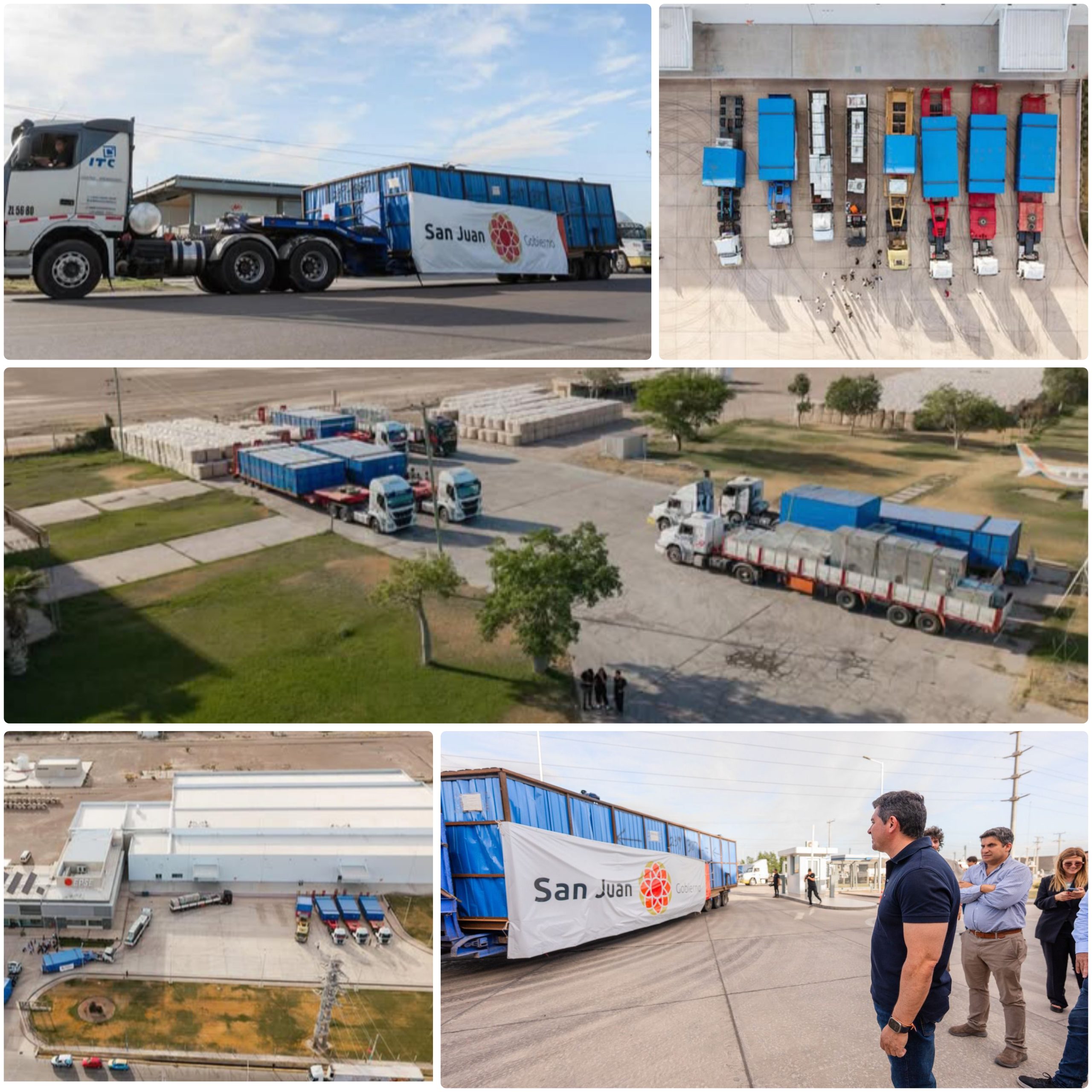 Marcelo Orrego encabezó, en las instalaciones del E.P.S.E. (ubicadas en Pocito, en Calle 6 y Maurín), la recepción de los camiones que transportaron la muy esperada laminadora industrial. No es una máquina cualquiera, sino el «corazón» de la nueva fábrica de paneles solares, una pieza fundamental que promete revolucionar la matriz productiva de San Juan.