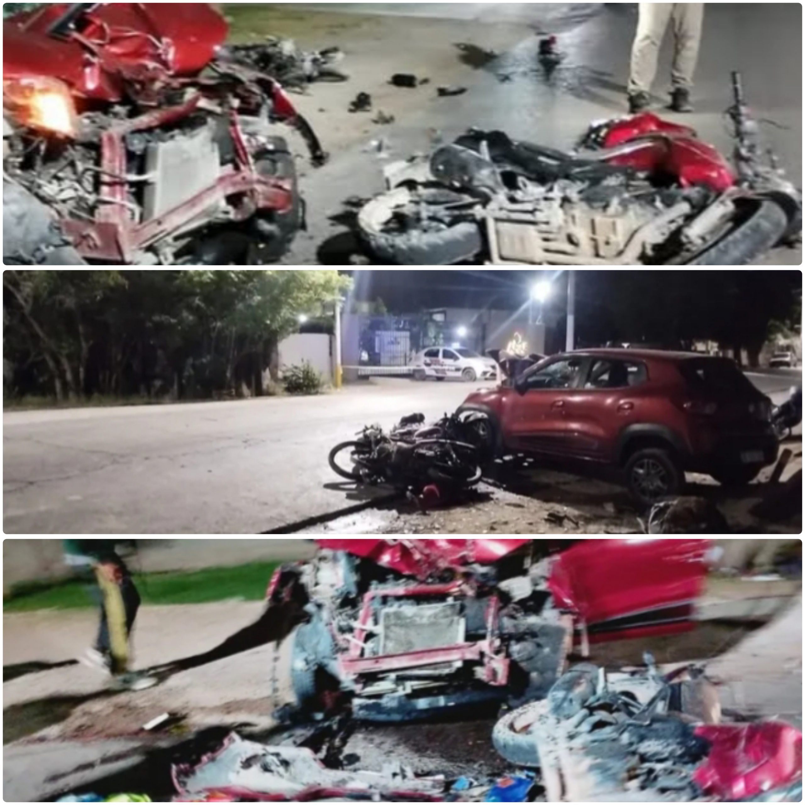 El hecho ocurrió en calle Abraham Tapia. El auto circulaba de Sur a Norte y al intentar sobrepasar a otro vehículo, se cruzó de carril y no se percató que en ese momento venían tres motos. No tuvo el tiempo suficiente para volver a su carril y las terminó embistiendo con mucha violencia.